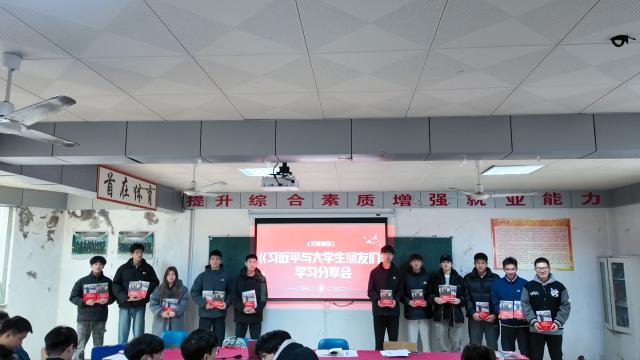 在分享会上,学院首先为各班级派发了《习近平与大学生朋友们》书籍,这本饱含着习近平总书记对青年一代深切关怀与殷切期望的著作,瞬间成为了全场瞩目的焦点。随后,集体观看《温暖——习近平与大学生朋友们》视频。视频展现了习近平总书记走进校园,与大学生交往、交流、交心的画面,这些生动的画面,真实地展现了习近平总书记对大学生朋友们无微不至的关怀,让我们看到了一位领袖与青年之间深厚的情谊。